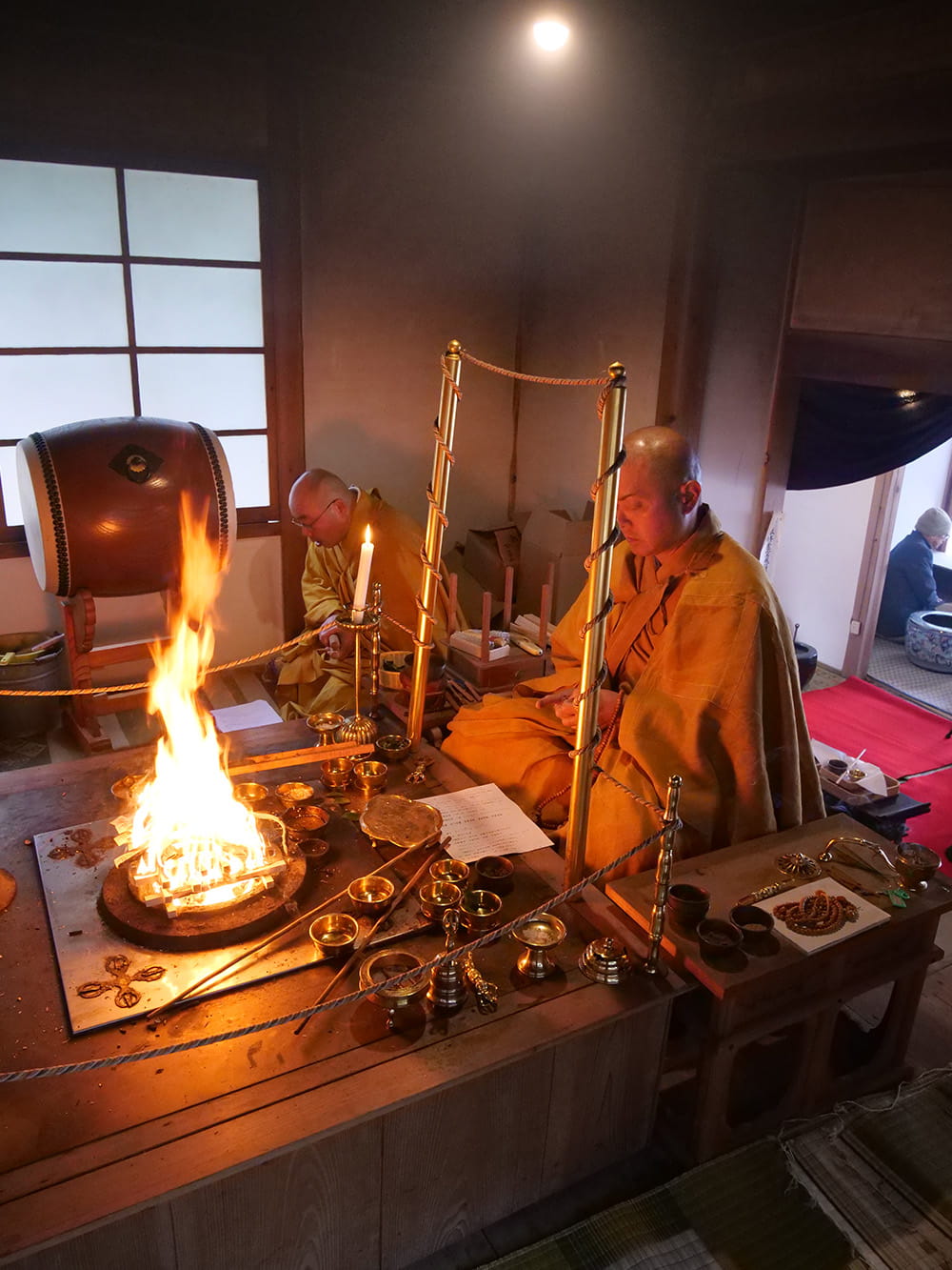 本堂においては大般若転読の特別祈祷で、厄除け、合格祈願をはじめ所願成就等の様々なご祈祷も施行され、午後からは柴燈大護摩供で参拝者の「無病息災」を祈願し火渡りも行われました。