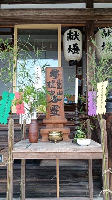 行事のご案内 2025.08.31 本尊観音供(十七夜)並びに施餓鬼法要厳修 行事のご案内 去る令和7年8月17日 午後6時半ごろより、恒例の本尊十一面観音供(十七夜)並びに施餓鬼法要を厳修いたしました。 ご本尊に日頃の報恩の誠を捧げ、檀信徒の皆様が書かれたヘギ(経木)塔婆をもって各家のご先祖様のご供養をいたしました。 また法要中には、長福寺御詠歌講の皆様にご詠歌の奉納をしていただき、西陽が沈む幻想的な空の下、厳かな施餓鬼法要となりました。 高辻賢一 個展『楽』GAKUが、長福寺本堂にて開催されました。