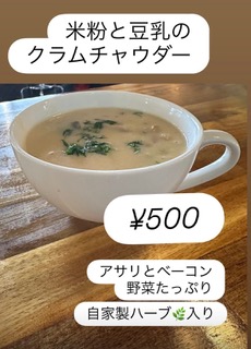 ピザ各種、クラムチャウダー、コーヒー、ゆず茶をご提供します。